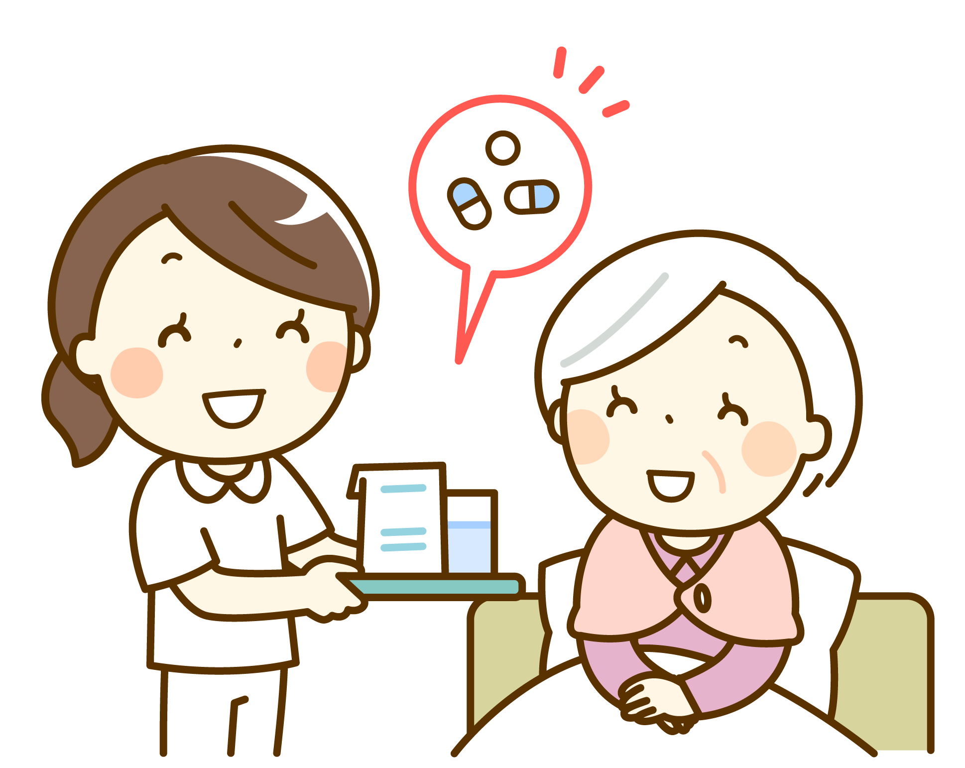 服薬状況の確認や、治療に関する説明・自己管理の支援を行います。